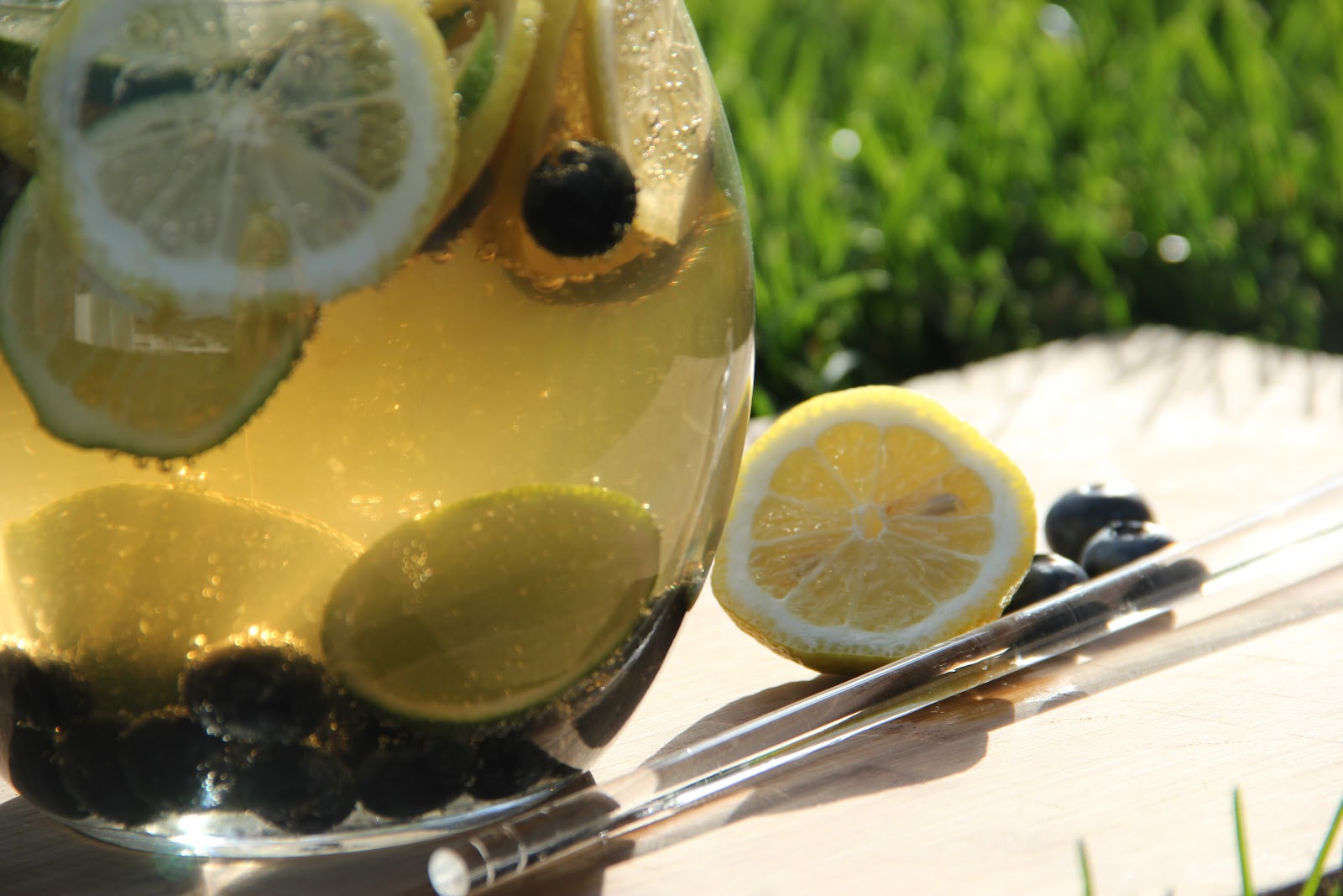 Start by cutting up lemon and lime, add blueberries and mint ( add mint to your taste) to pitcher. Pour in vodka and ginger ale. Stir together, add ice. Now you are ready to pour and get this party started! Have fun be safe!